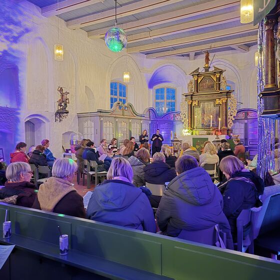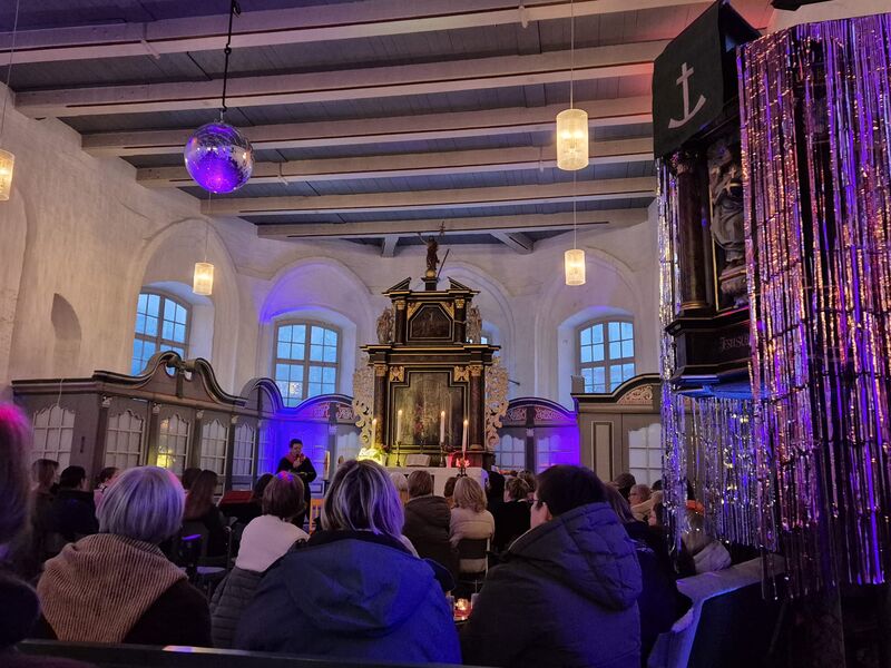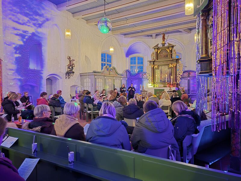 Zum 2.x fand in der Gesamtkirchengemeinde Kehdingen ein Freundinnengottesdienst statt. Dem Vorbereitungsteam um Pastorin Sonja Sapora, mit Andrea Gellert und Claudia Rambow hat sich dieses Jahr Pastorin Alyssa Baatz aus Assel angeschlossen. Wieder wurde die Kirche wunderbar dekoriert. Es gab sogar eine Discokugel, die die Kirche in ein tolles Licht tauchte. Viele Frauen aus Kehdingen besuchten diesen Gottesdienst. Zu Beginn gab es eine kleine Andacht zu dem Text aus dem 1. Buch Rut, 1-18. Danach hatten alle Frauen eine gute Zeit mit vielen Gesprächen, einem FingerFood-Buffet, Candy-Bar, Popcorn und Zuckerwatte.