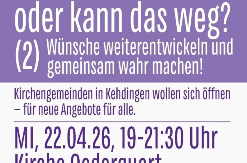 Ist das Kirche-oder kann das weg? (2) Wünsche weiterentwickeln und gemeinsam wahr machen. Kirchengemeinden in Kehdingen wollen sich öffnen - für neue Angebote für alle.