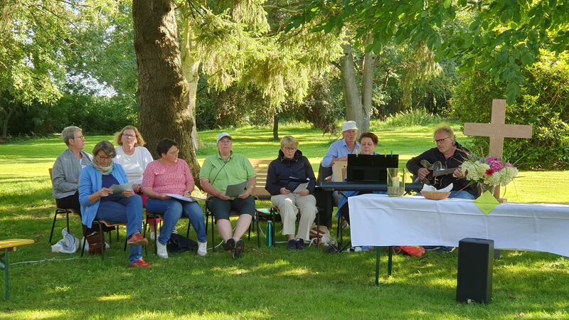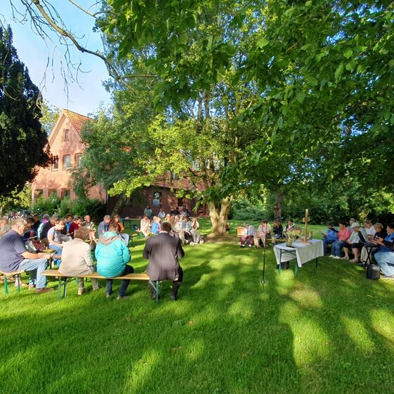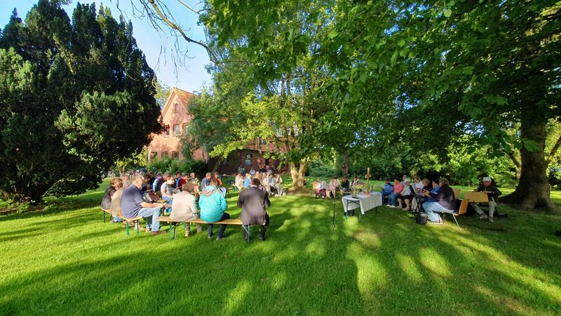 Am 10. August 2025 fand der traditionelle Pfarrgartengottesdienst statt. Eine große Runde von Teilnehmenden erfreute sich am Gottesdienst, der von Prädikantin Claudia Rambow und ihrem Team gehalten und musikalisch gestaltet wurde. Im Gottesdienst ging es um den Sommer, um den Garten und Sonnenblumen, um Gottes Begleitung in unserem Leben.