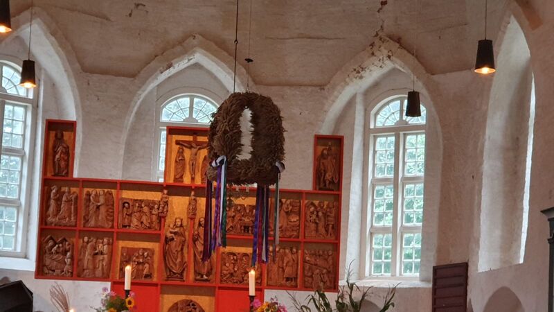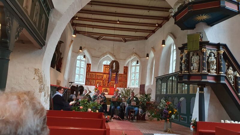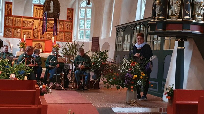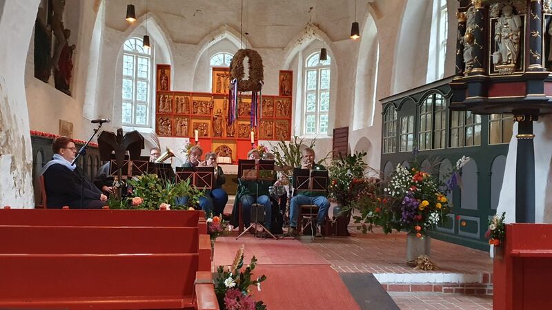 Auch in diesem Jahr gab es am Erntedankfest eine Andacht zum Apfeltag. Musikalisch wurde die Andacht durch die Blaskapelle Freiburg/Elbe unter der Leitung von Petra Wörmke begleitet. Zwischen den Musikstücken gab es von Lektorin Claudia Rambow kleine Geschichten / Gedichte / Begebenheiten zum Thema Apfel / Erntedank und Herbst. Ein gemeinsames Lied rundete die kleine Andacht ab.
