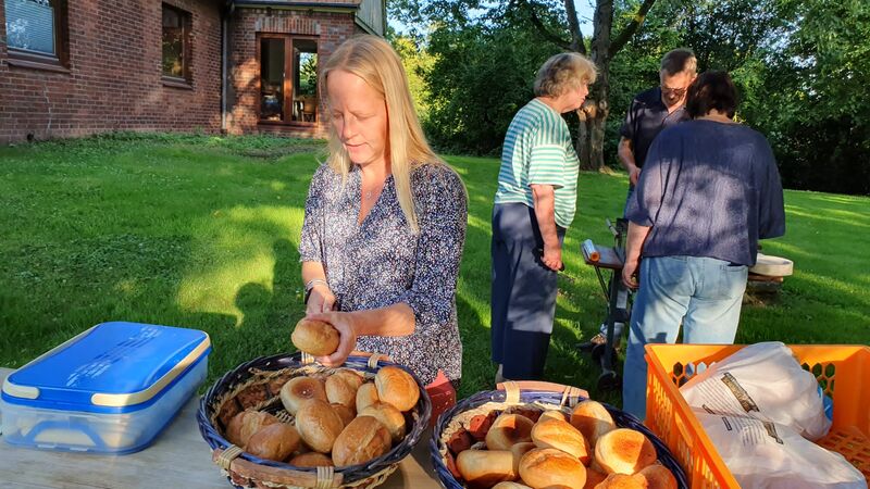 Im Anschluss, bei Bratwurst, Brötchen und kühlen Getränken gab es noch tolle Gespräche in lockerer Atmosphäre. Als Geschenk nahmen wir dann noch ein Samentütchen, in Anspielung auf den Andachtstext, mit.