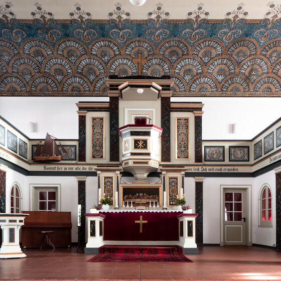 Im Zentrum der Ortswucht erhebt sich auf dem erhöhten Standort des Vorgängerhauses die evangelische St. Wulphardi Kirche. Sie wurde in den Jahren 1835 bis 1837 erbaut. An dem Standort war zuvor eine romanische Basilika aus dem 12. Jahrhundert angesiedelt, welche bei der Sturmflut von 1825 stark beschädigt wurde.